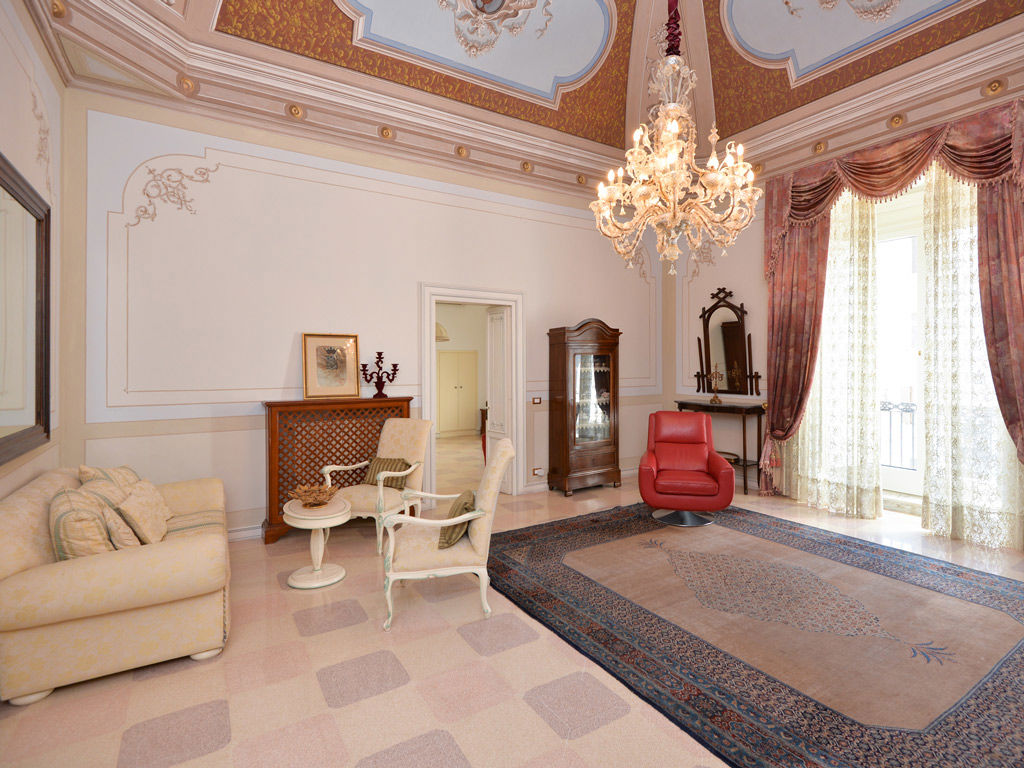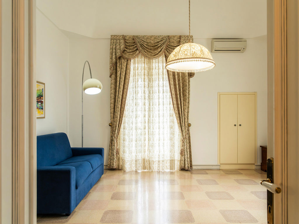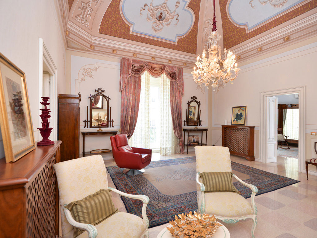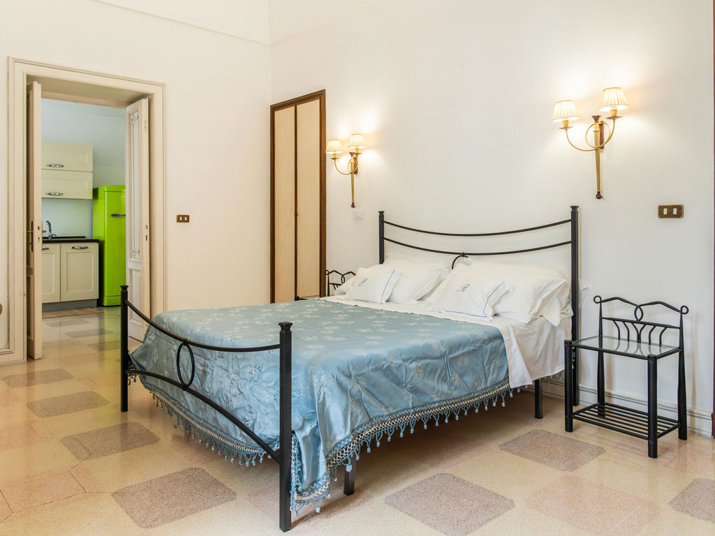 L'appartamento Deluxe con Terrazza (200 m2 circa), con arredi d’epoca liberty, è dotato di sei posti letto ed è composto da due camere da letto matrimoniali, grande salone con volta e pareti affrescate con divano letto matrimoniale, cucina, ampio bagno con vasca/doccia ed un’ampia terrazza con accesso dal soggiorno.