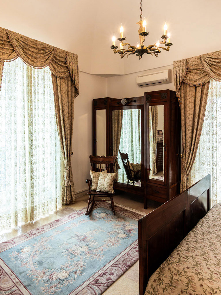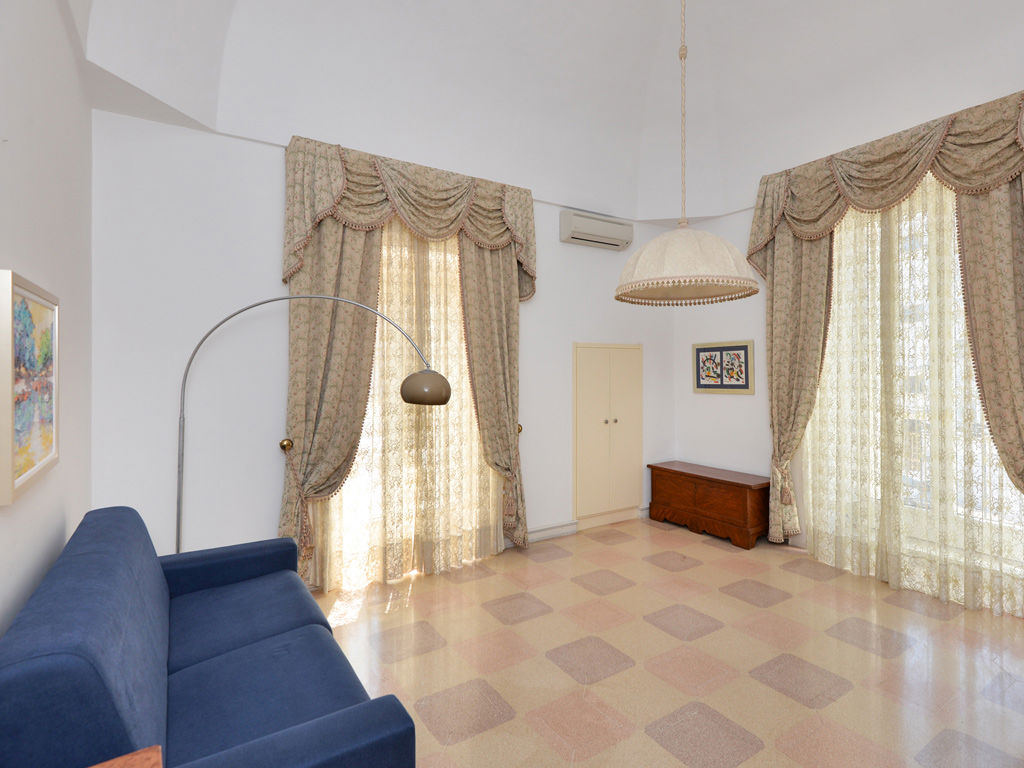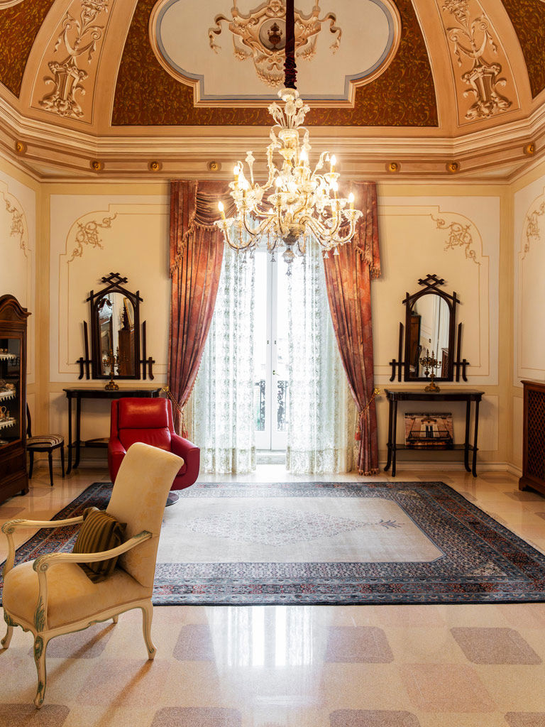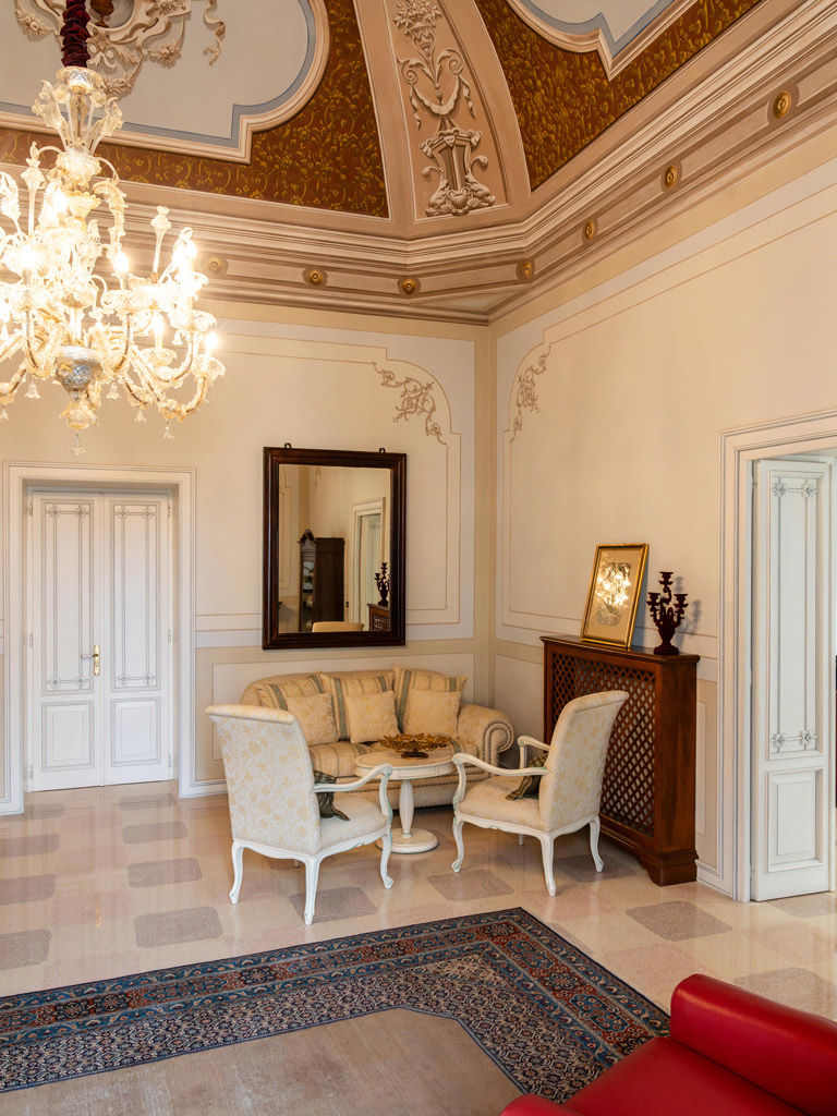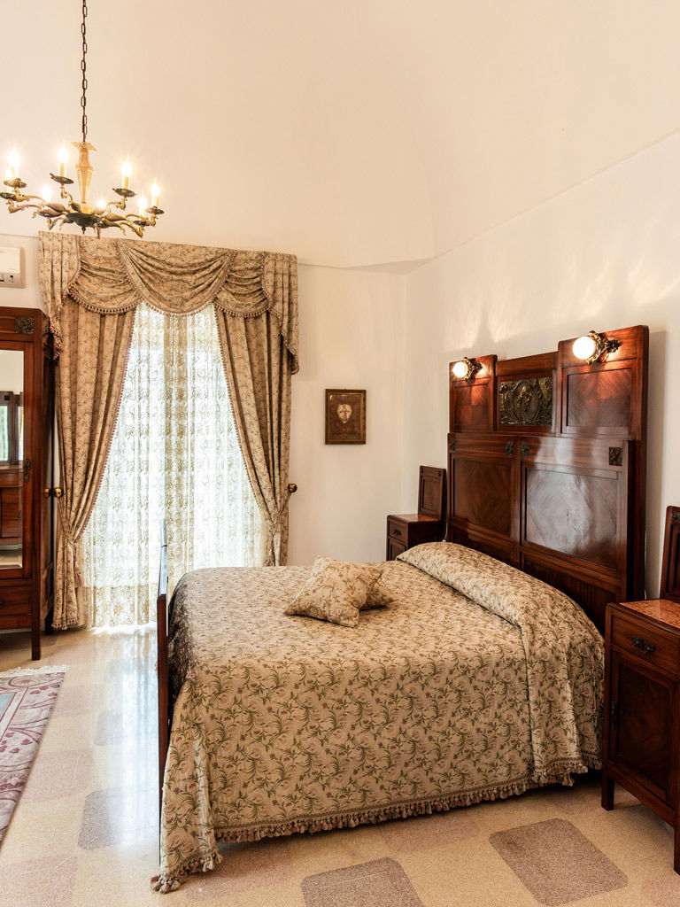 L'appartamento Deluxe con Terrazza (200 m2 circa), con arredi d’epoca liberty, è dotato di sei posti letto ed è composto da due camere da letto matrimoniali, grande salone con volta e pareti affrescate con divano letto matrimoniale, cucina, ampio bagno con vasca/doccia ed un’ampia terrazza con accesso dal soggiorno.